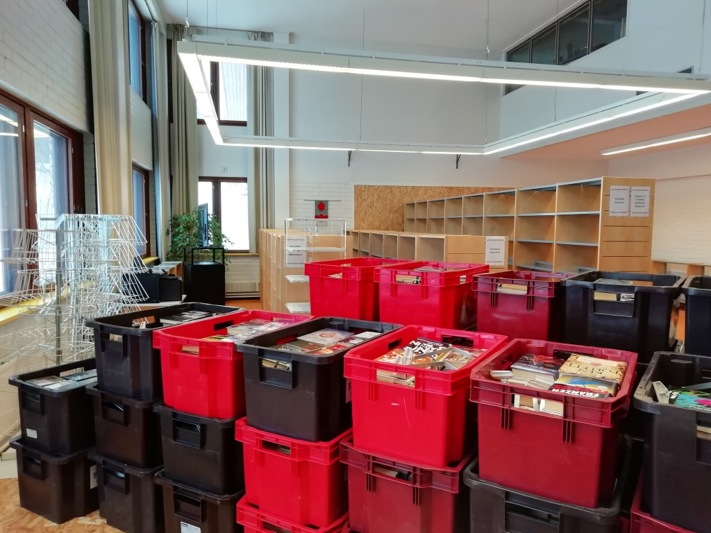 Kirjat pakattuna ja lähdössä kohti remontoitua kirjastoa.