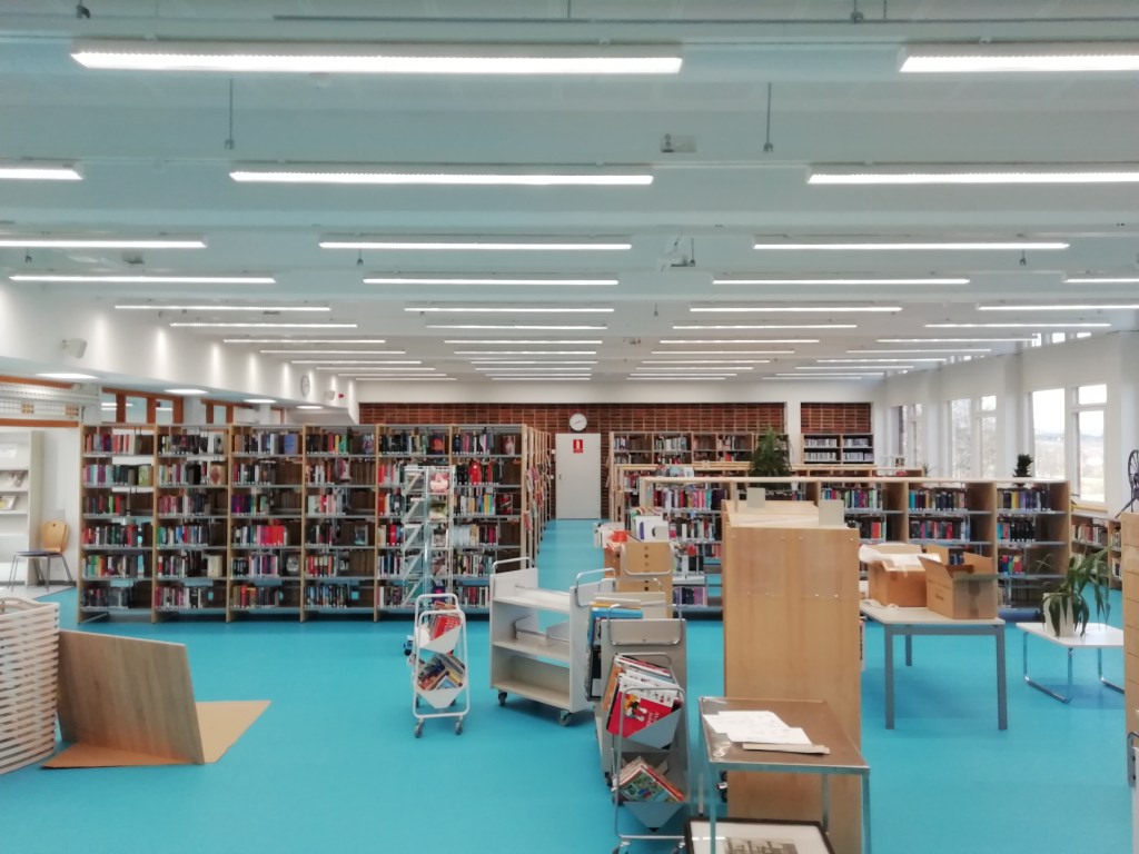 Mutta, korona iski ja laittoi kirjastot kiinni 18.3.2020. Alkoi epävarmuuden aika, milloin kirjastot olisivat taas auki ja millä tavalla saisimme palvella asiakkaita. Muuton kannalta tämä osoittautui hyväksi asiaksi, sillä saimme nyt lisäaikaa ja pystyimme rauhassa miettimään eri kokoelmien paikat, tekemään poistoja ja ottamaan huomioon yksityiskohtia. Jopa sisustamista pystyi tekemään, kun oli aikaa ja mahdollisuutta pyöritellä sohvien paikkoja kuntoon.