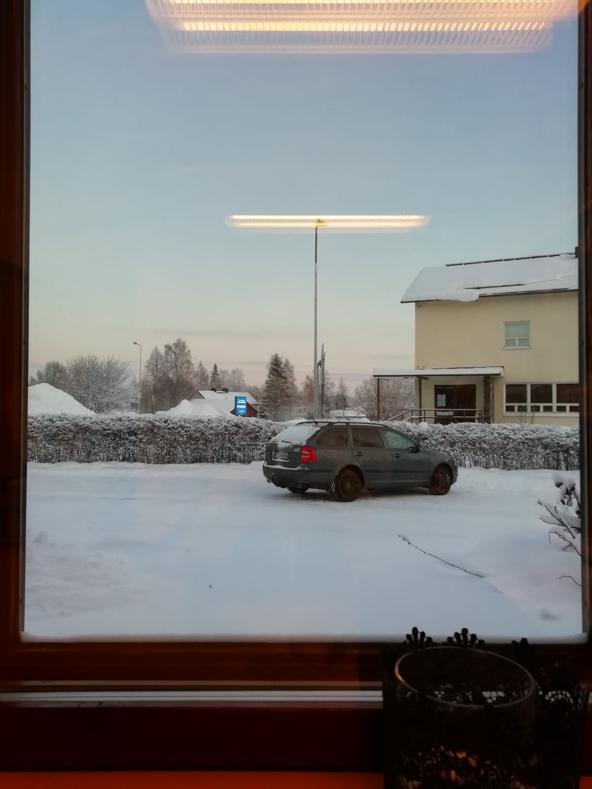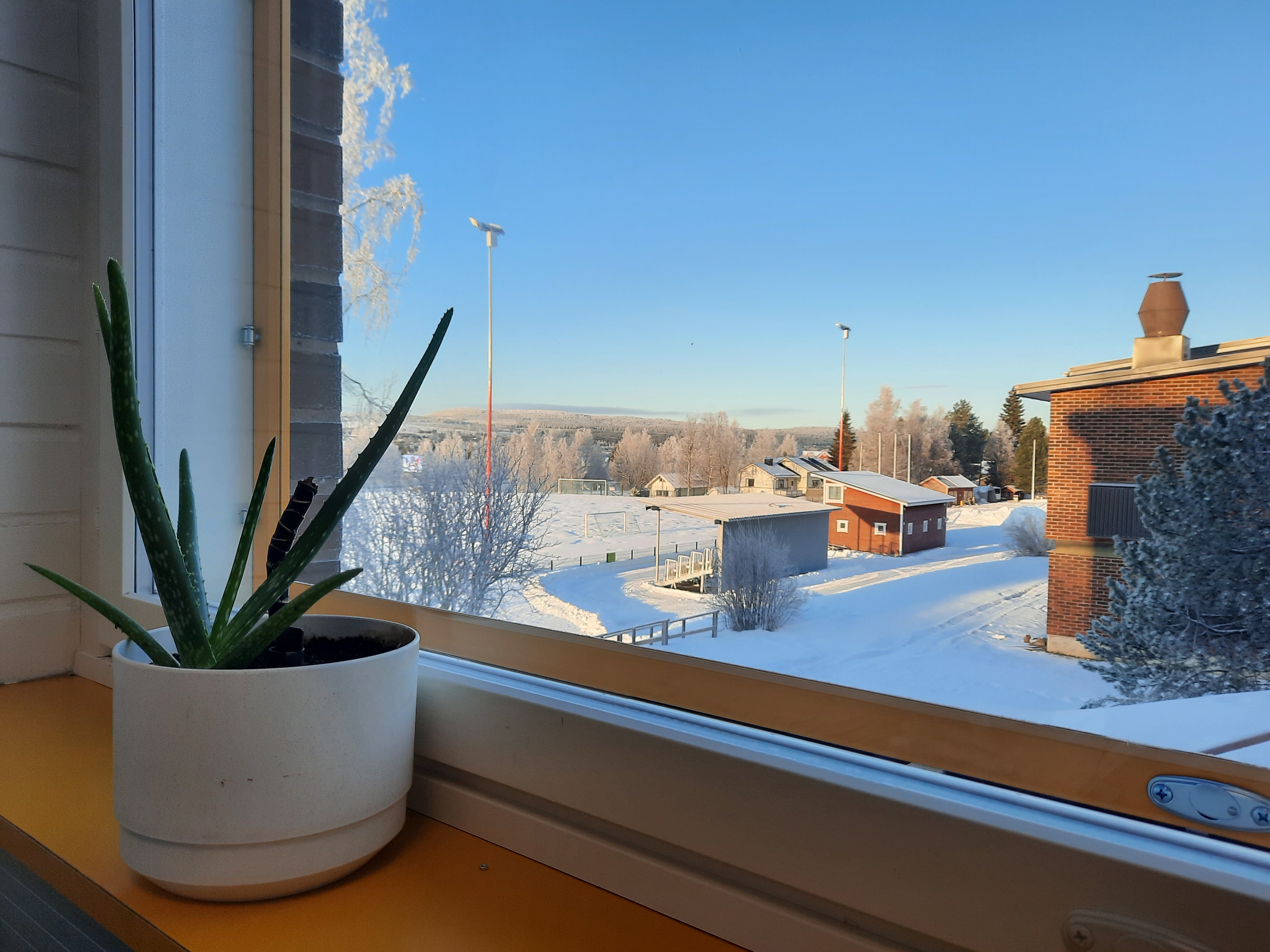 Näkymä Ylitornion kirjaston työhuoneen ikkunasta.