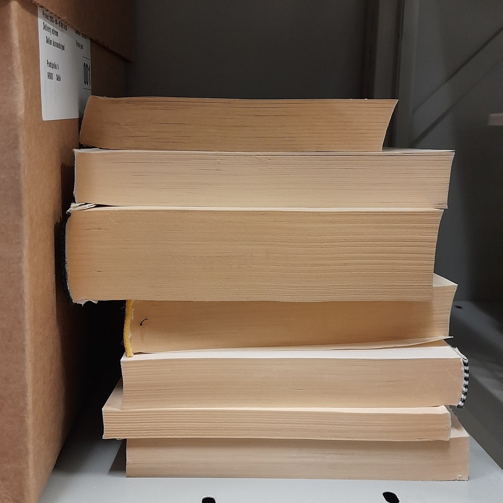 Vaihtoehtona on enää kirjojen hävitys, niin pahalta kuin se tuntuukin. Meillä on tällä viikolla ollut tet-harjoittelija, jonka yhtenä tehtävänä on ollut näiden myymättä jääneiden poistokirjojen käsittely kierrätystä varten. Toisin sanoen hän on repinyt kirjoista kansia. Riippuu paikallisen jätehuollon ohjeistuksesta, voiko kirjoja laittaa paperinkeräykseen vai ei. Esimerkiksi Helsingin seudun ympäristöpalveluiden sivuilla lukee näin: ”Kirjat eivät tällä hetkellä kelpaa paperinkeräykseen edes kansien poiston jälkeen, sillä sivut pysyvät tiiviinä kokonaisuutena eivätkä ne hajoa käsittelyprosessissa riittävän nopeasti.” Joissain paikoissa kirjat kelpaavat, kunhan niistä ensin revitään kannet energiajätteeseen. Urakka on silti aikamoinen.