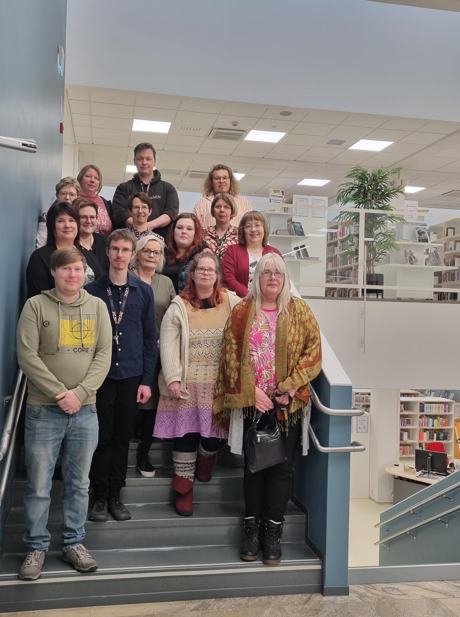 Perjantaina 27.10.2023 Simon ja Tornion kirjastot saivat käyntiin AKE-kirjastokaveruuden, kun Simon kirjaston henkilökunta vieraili vasta remontoidussa ja uudistuneessa Tornion kirjastossa. Päivän ohjelmaan sisältyi kirjaston tiloihin ja toimintoihin tutustumista kattavalla esittelykierroksella, ja pääsipä simolaiset tutustumaan myös uuteen kirjastoautoon. Ja kuten kunnon koulutuspäivään kuuluu, oli päivän ohjelmassa tilaa myös vapaalle keskustelulle ja kuulumisten vaihtamiselle. Pizzatauon ja kirjaston esittelyn jälkeen tutustuimme myös samassa rakennuksessa toimivaan Aineen taidemuseoon, jossa saimme opastetun kierroksen.