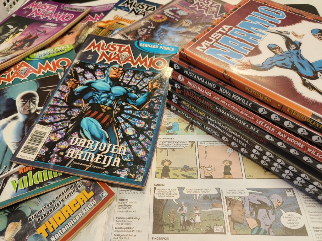 Mustanaamion luoja Lee Falk (1911-1999) sai innostuksen vanhoista myyteistä ja legendoista, jotka olivat aina kiehtoneet häntä. Nimekseen tiukoissa trikoissa esiintyvä sankari sai nimekseen Phantom. Ensimmäinen esiintyminen oli 17. helmikuuta 1936 yhdysvaltalaisissa sanomalehdessä, ja Suomeen hän saapui Mustanaamiona vuonna 1940 sanomalehti Karjalaisessa. Varsinaisena sarjakuvalehtenä Mustanaamio alkoi ilmestymään 1966. Kulta-aikaa vietettiin 80-luvulla, ja myös minä luin Mustanaamioni teininä.