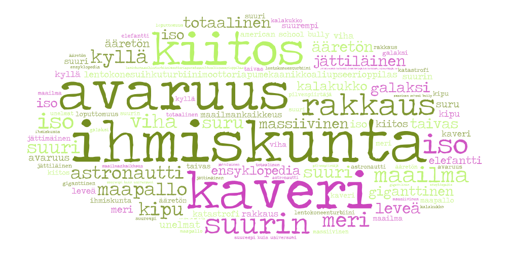Kuva. SUURET SANAT. Yhteinen sanavarasto-tehtävä nuorten hyvinvointipäivältä.