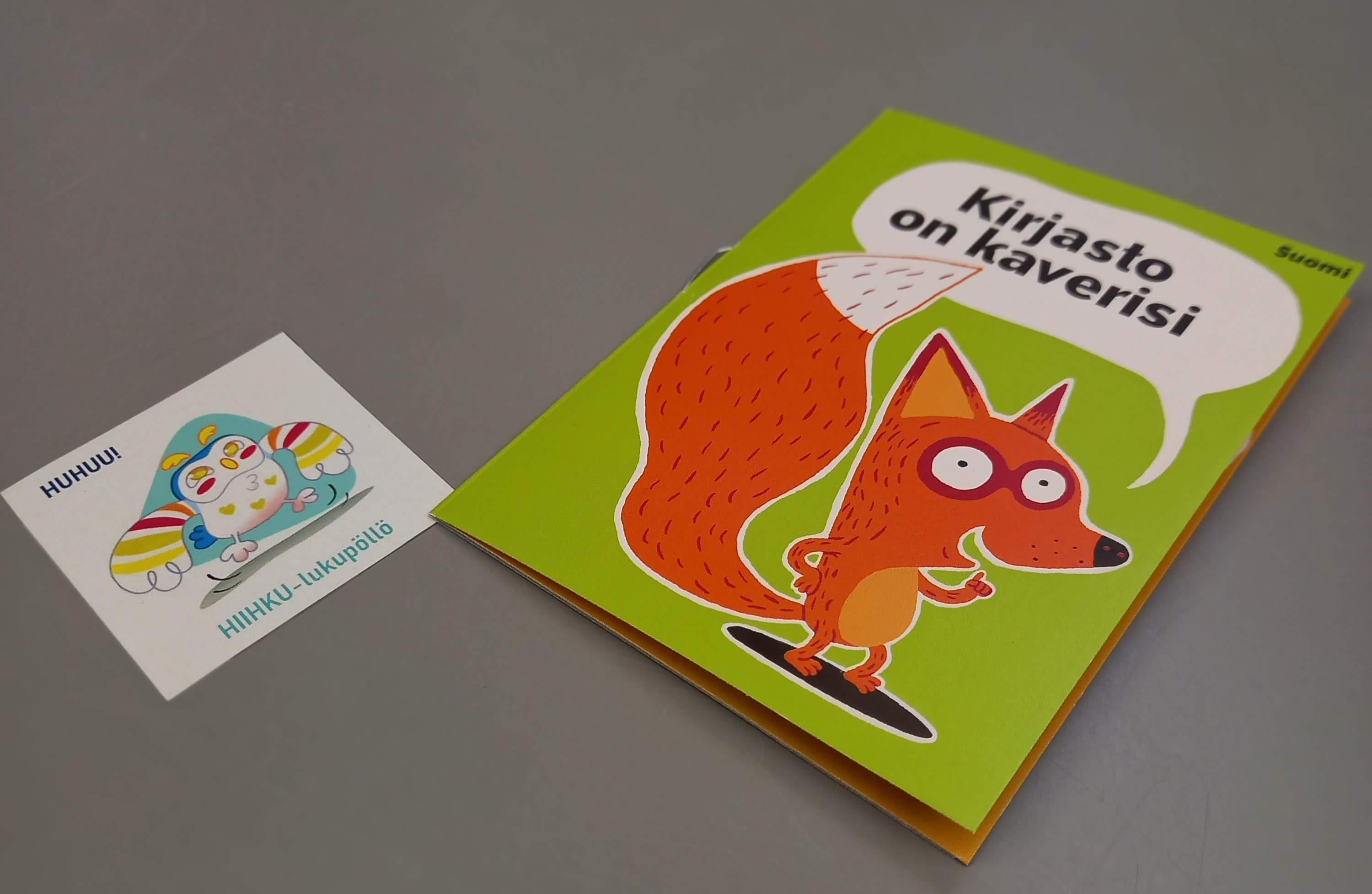 Kaikki lapset kuuntelivat tarkasti meitä kirjastotätejä ja kun saivat alkaa lainata kirjoja, uskalsivat myös kysyä. Tietokirjoja, helppolukuisia ja kuvakirjoja – kaikki kelpasi! Kirjastokortin lisäksi lapsille annettiin Hiihku-tarra ja Kirjasto on kaverisi -esite.