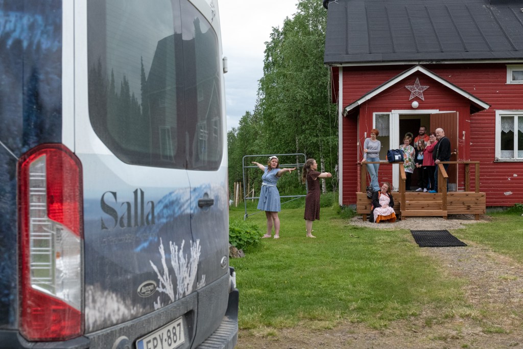 Sallan kulttuuripalvelut osallistui Piste Kollektiivin hallinnoimaan Pohjoisen Uudet Polut -hankkeeseen v. 2022. Hankkeella pyrittiin tavoittamaan erityisesti ihmisiä, jotka jäivät taidepalveluiden ulkopuolelle. Tuuppasimme taiteilijat monipalveluauton kyytiin ja samalla kun auto vei kirjoja asiakkaille, taiteilijat esittivät Lainan tanssit -teoksen. Lainan tanssi oli teos, jossa kaksi Lainaksi nimettyä tanssijaa tanssii katsojien lainoja. Kyseessä oli hetkessä elävä improvisoitu tanssiteos.