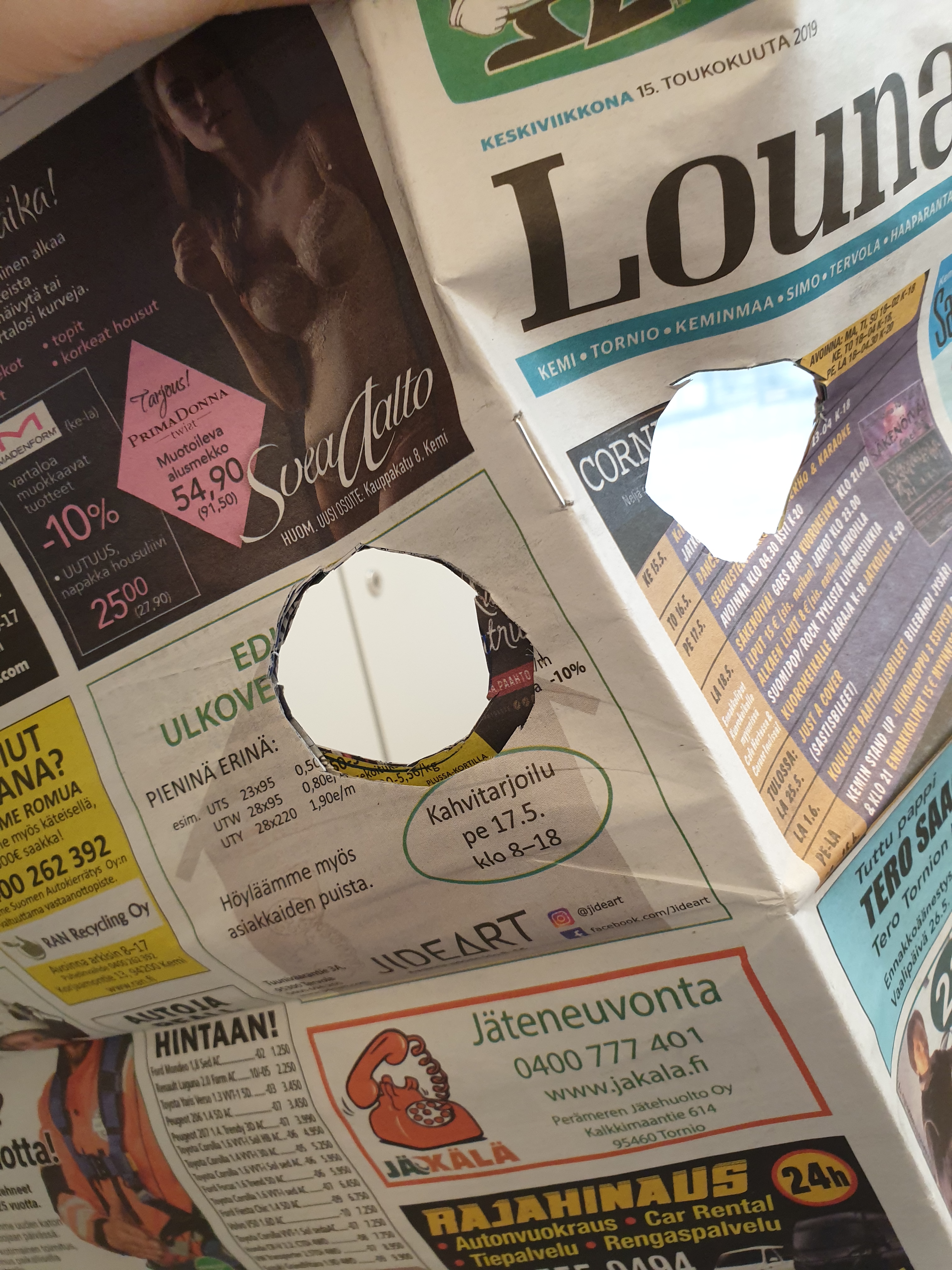 Järjestelyissä tein toimeksiannon Ammattiopisto Lappian kuvallisen ilmaisun opiskelijoille. Toimeksiannossa tilasin graafisia lavasteita, kuten lavastettuja rikospaikkakuvia ja lehtileikkeen. Joulupolun alla sain luotua yhteistyölinkin Lappialle ja toimeksiannoilla haluan ylläpitää yhteistyötä myös tulevia tapahtumia ajatellen.