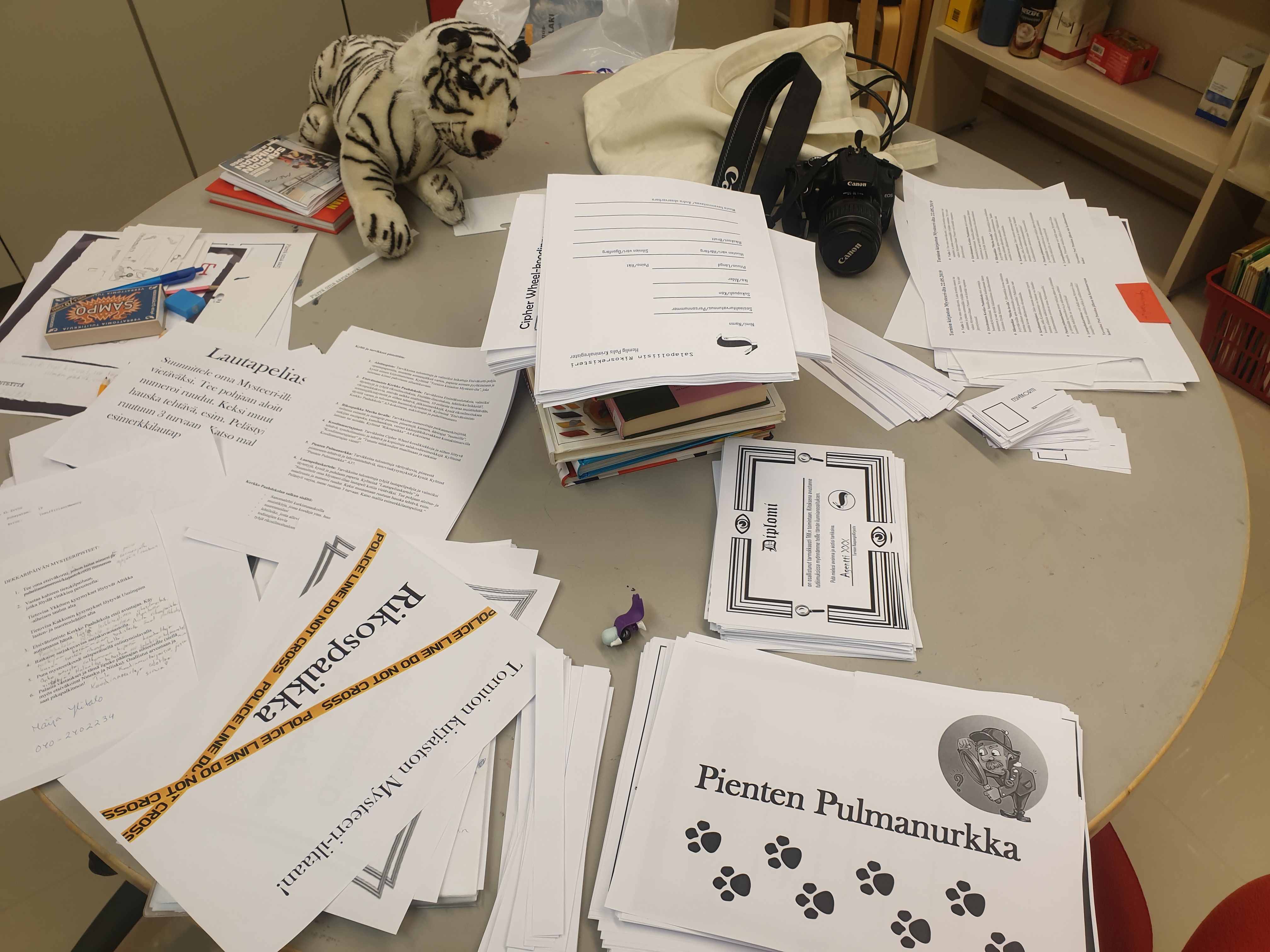 Tarkoituksena oli aluksi tehdä koko kirjaston tapahtuma, johon pyydettäisiin Aineen taidemuseo ja Tornionlaakson maakuntamuseo mukaan. Tällöin tapahtuma laajenisi Kulttuurikartanon Mysteeri-illaksi. Kulttuurikartanoon kuuluvat kirjasto, Aineen taidemuseo ja Tornionlaakson maakuntamuseo. Tiukan aikatauluni vuoksi tapahtuma on keskitetty tänä vuonna pelkästään lasten- ja nuortenosastolle.
