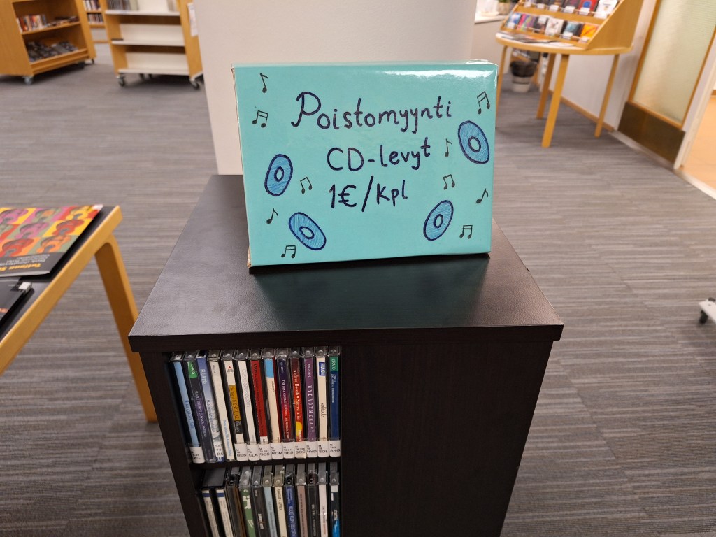Sijaisuuteni aikana tein myös levykokoelman inventaariota sekä listan edellisvuoden top-levyistä hankintaa varten. Lisäksi opettelin, miten kausijulkaisujen uudet numerot merkitään järjestelmään saapuneiksi ja kuinka aineiston poimintaluettelointia tehdään. Pääsin myös hyödyntämään askartelutaitojani ja tekemään myyntikylttejä myytävää aineistoa varten sekä toteuttamaan aineistonäyttelyn.