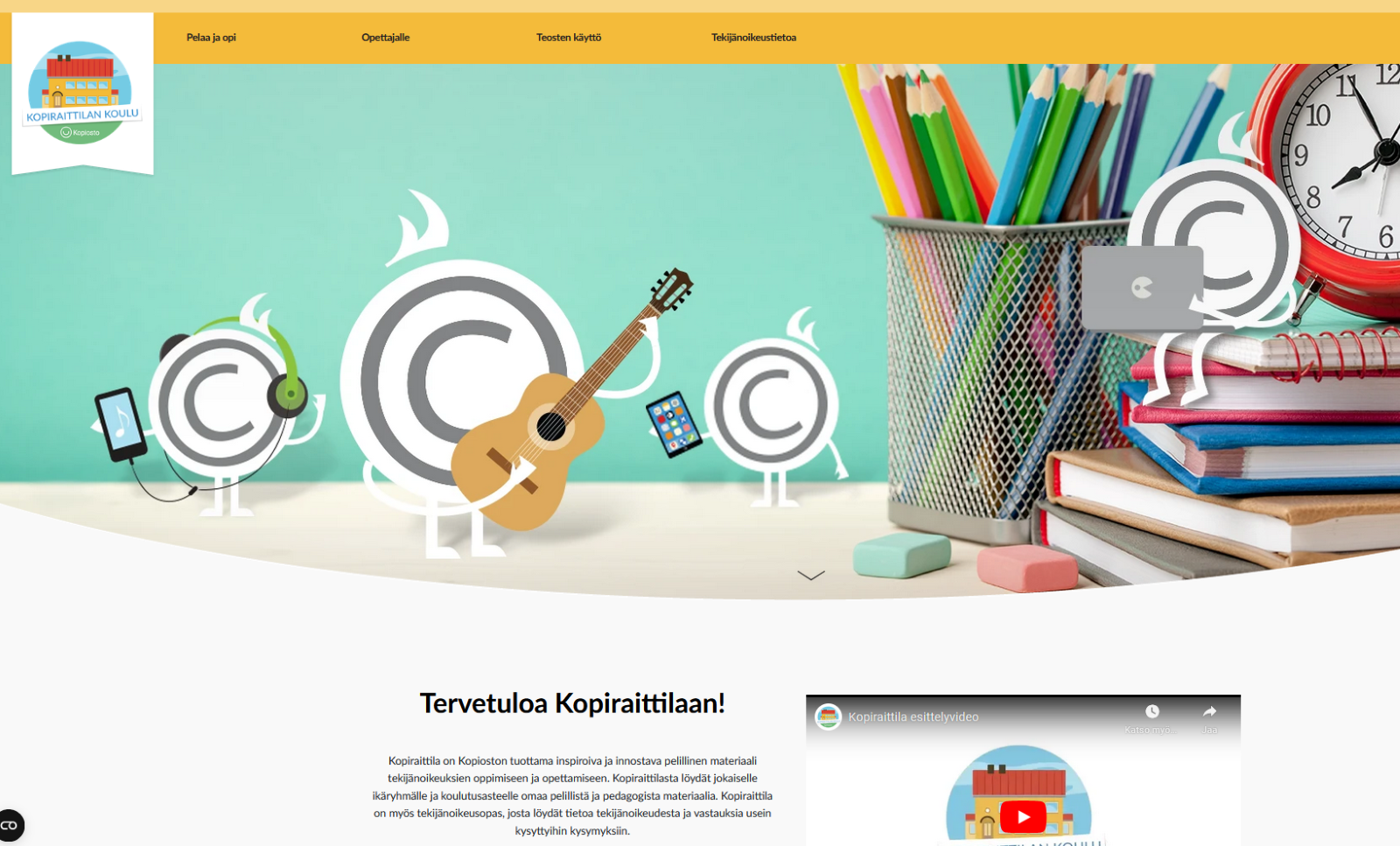 Kopioston Kopiraittilassa voi tutustua opetustilanteiden tekijänoikeuksiin ja sieltä löytyy myös opetusmateriaaleja eri ikäisille päiväkodista toiseen asteeseen.