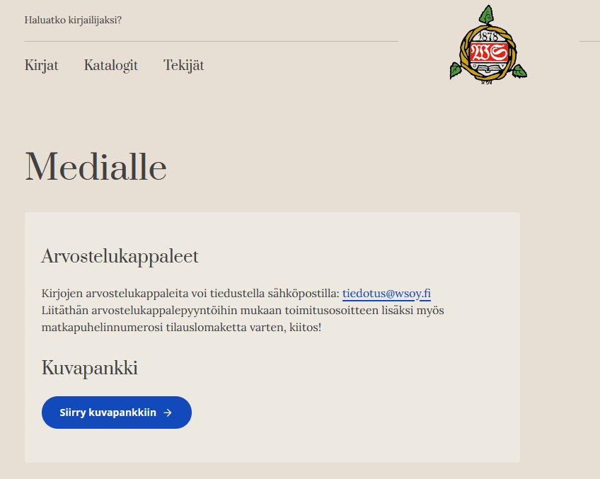 Kirjojen kansikuvien käyttöoikeuksiin myöhemmin lisää tutustuessani huomasin, että joidenkin kirjojen kustantajien verkkosivuilla on ohjeita, miten heidän kirjajulkaisujensa kansikuvia saa käyttää ja joillain on myöskin kuvapankkeja, joista kansikuvat löytää tarpeen vaatiessa. Kuvapankit löytyvät usein kustantamoiden sivuilta ”medialle” osiosta.