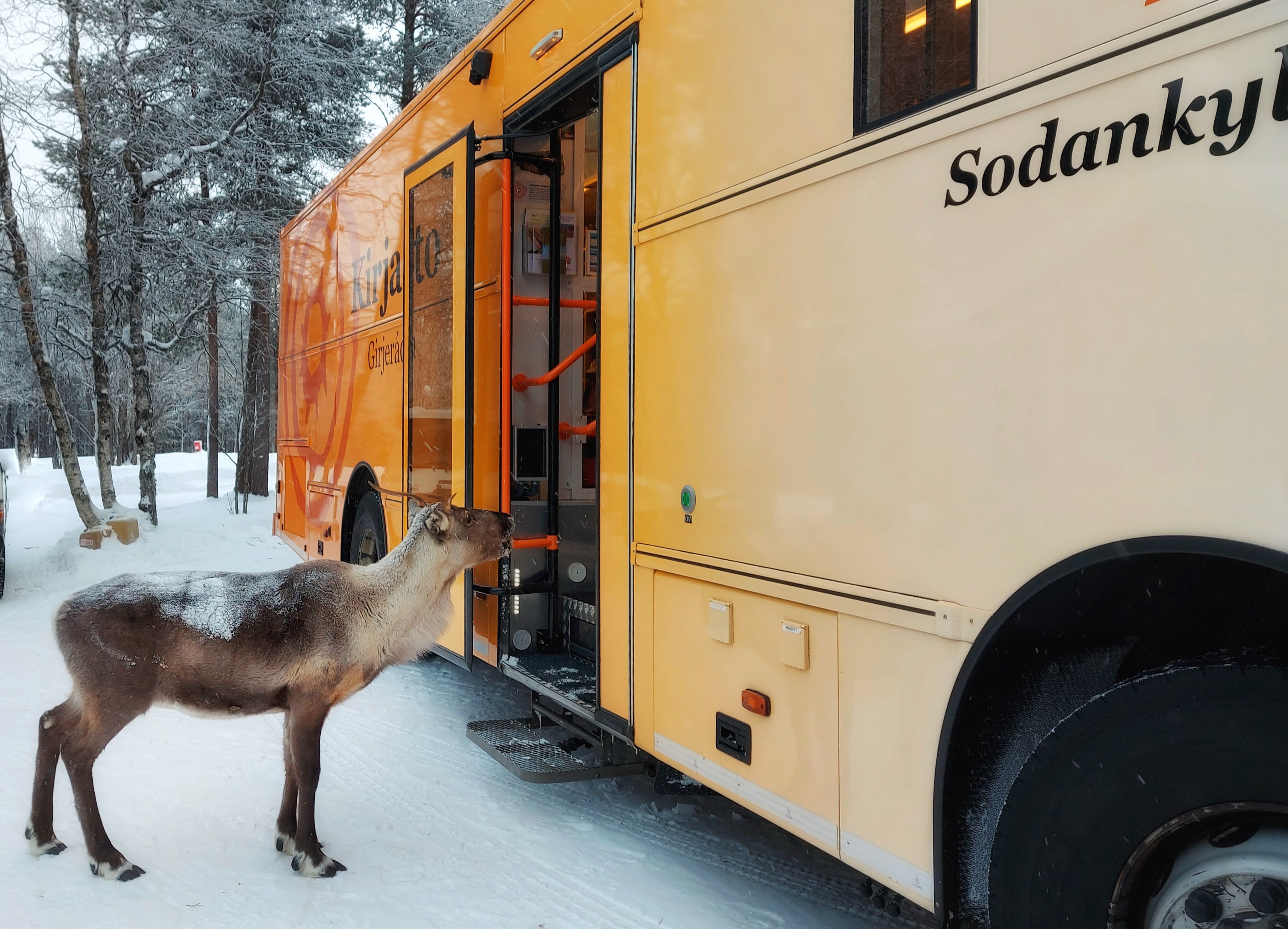 Kevään mittaan lähdin ajelemaan jo yksin. Ensimmäisenä 2 km päähän lähikoululle ja siitä pikkuhiljaa muille reiteille. Asfaltti suli ja iltareiteilläkin oli valoisaa. Ajamisen lisäksi täytyy huolehtia myös auton kunnosta; renkaiden vaihdosta, huolloista, katsastuksesta ja monista muista asioista. Samaan aikaan tarkastelimme myös aikatauluja ja viilasimme niitä ennen uuden ajokauden alkua syksyllä. Pysäkkien tilanne elää koko ajan, asiakkaita poistuu ja johonkin toiseen paikkaan voi tulla uusia. Ensimmäinen vuosi on ollut opettelua joka päivä. Hyvä työyhteisö ja puhelinsoiton päässä olevat kontaktit muista sidosryhmistä auttavat, jos jokin selvittämistä vaativa asia tulee eteen. Yksin ei tarvitse koskaan jäädä! Olen oppinut vuoden aikana paljon Sodankylästä ja tutustunut isoon joukkoon hienoja ihmisiä. On mukava nähdä heitä kaikkia aina kolmen viikon välein, kun auto kiertelee ympäri laajaa kuntaa. Kirjastoauto on erittäin tärkeä ja pidetty kunnan tuottama palvelu.