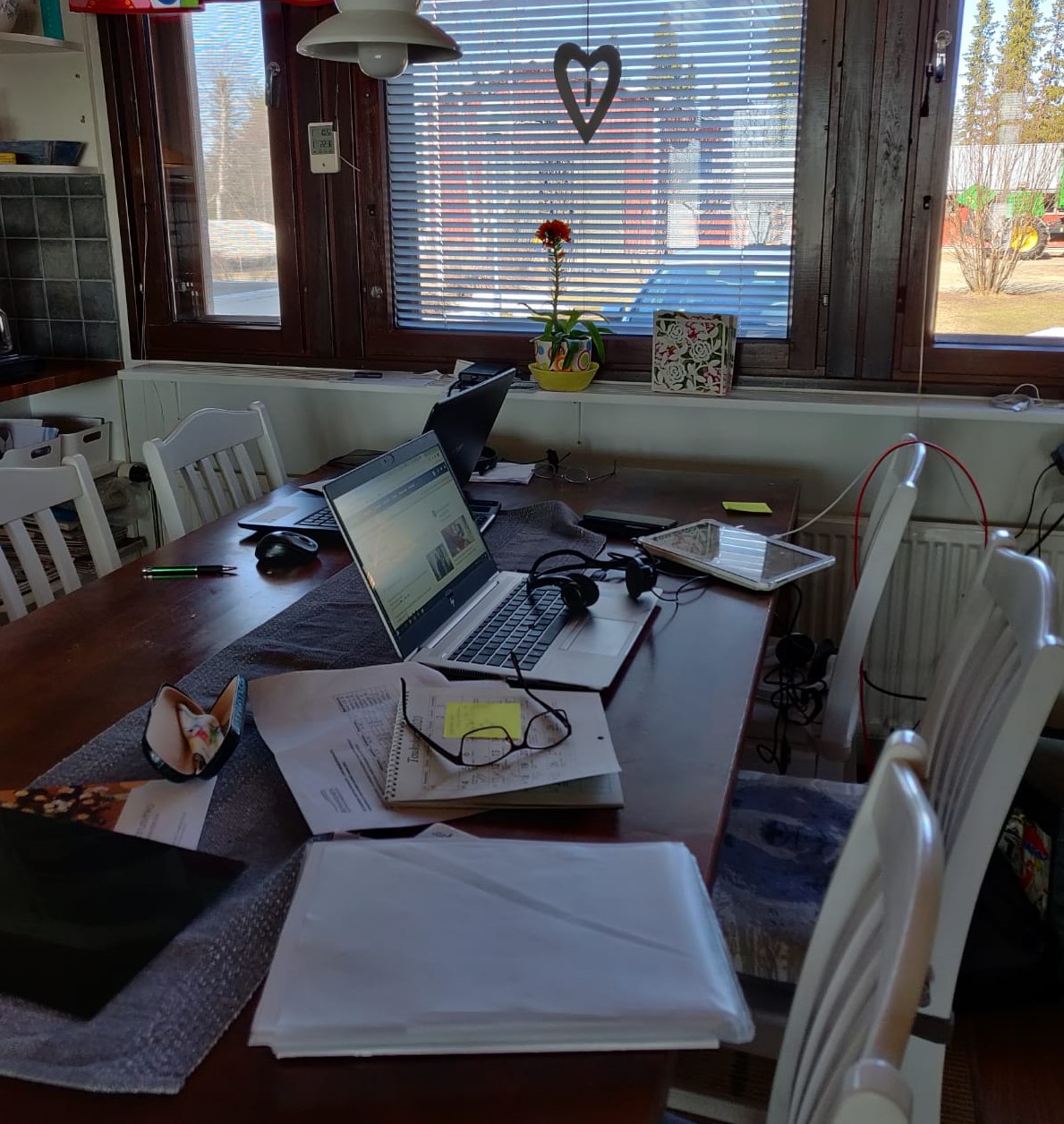 Opittiin ainakin etteivät etätyöt välttämättä olekaan niin ihanaa ja helppoa kun ei tarvitse aamulla laittautua töihin. Ensin on suorastaan juhlavaa jäädä kotiin työskentelemään läppärin äärelle, mutta pian päivät alkavat puuroutua rytmittömäksi massaksi jolloin ei enää tiedä onko töissä vai vapaalla, onko aika levätä ja ottaa rennosti vai puskea töitä. Työkavereitakin on ikävä. Enää ei kadehdita kollegan etätyöpäiviä vaan osaaottavasti ajatellaan, että siellä se raukka puskee sata lasissa ilman taukoja, ruokaileekin läppärin äärellä.