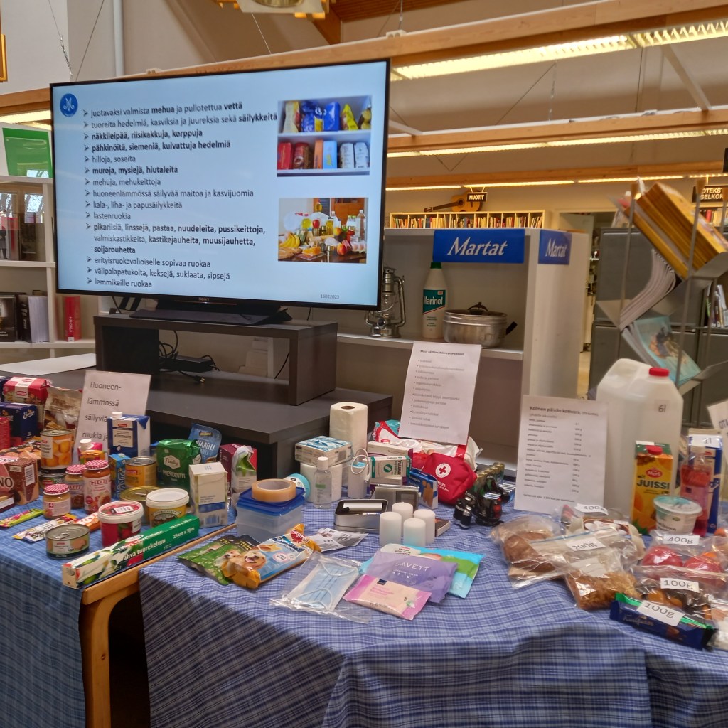 Marttojen Varautumisnäyttely herätti keskustelua sekä aikuisissa että lapsissa – osa lapsista ei ollut esim. nähnyt patteriradiota ennen 🙂 Näyttelyyn oli siis kerätty esineitä ja ruokatavaroita, joita pitäisi olla joka kodissa kolmen päivän (72 tuntia) ajaksi varalla.