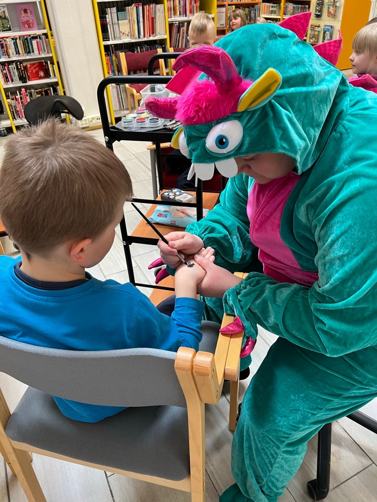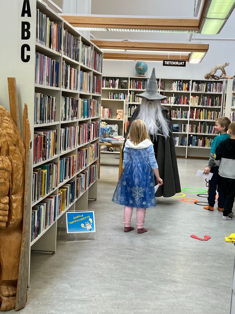 Meitä kirjastolaisia on täällä 6 henkilöä, joten tekemistä riitti kaikille! Maanantain Novellikoukkua järjestää Mirva, aikakauslehtiviikon koululaiskäynnit hoiti Irmeli, Tuula huolehti pop cornien teosta ja muustakin tarjoilusta, Marru taiteili lapsille kasvoihin kuvia, Petri teki kaikki mainokset, täytti ilmapalloja, oli ongintavastaava ja herätti ihastusta Gandalfina ja Leena striimasi lähetykset ja haahuili ympäriinsä.