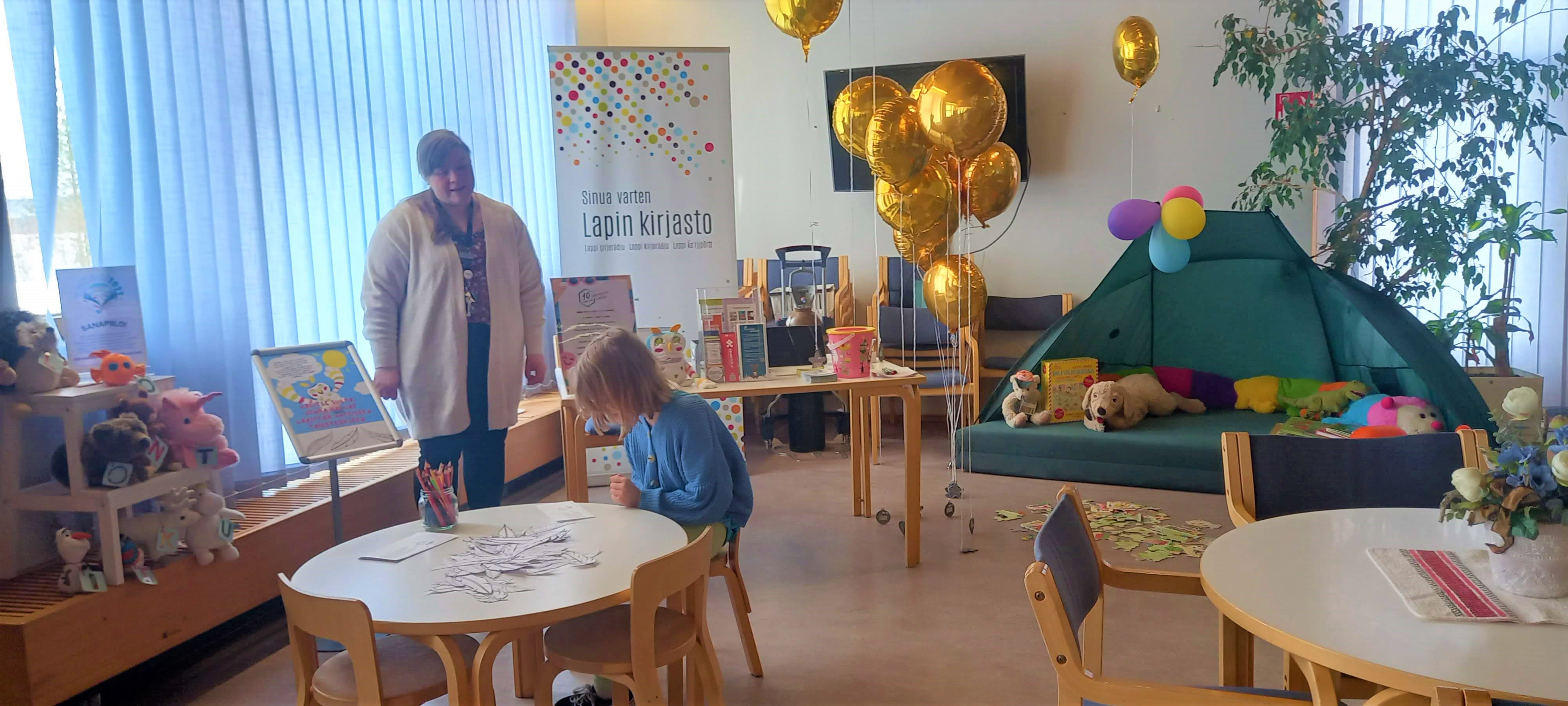 Perheiden päivässä järjestimme Hiihkulle siipisulkien maalausta, jaoimme ilmapalloja, pidimme lyhyen kyselyn ja mukana oli satuteltta Poppy-koirineen. Hyvin kävi porukkaa ja saimme tehdä muutaman kirjastokortin ja jaoimme myös PIN-koodeja.