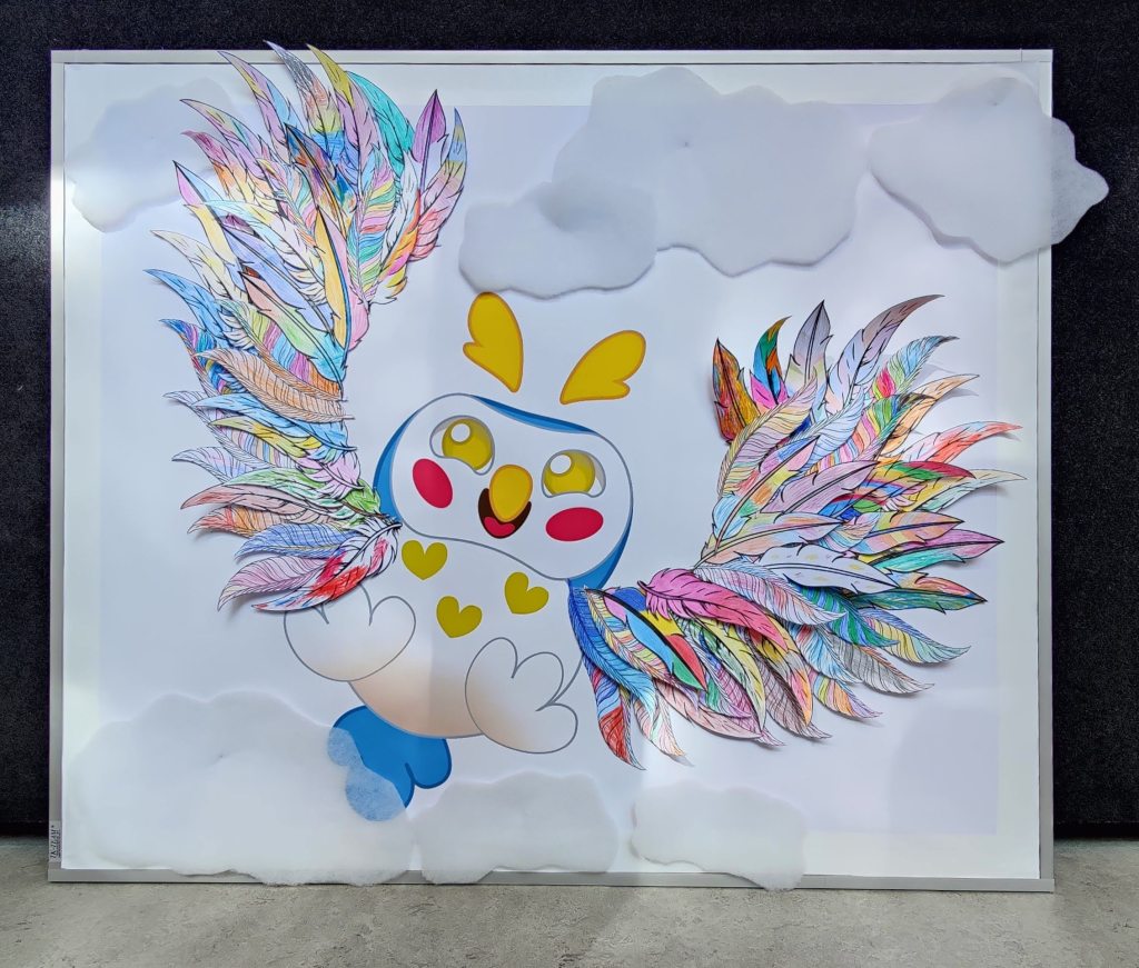 Irmeli ja Marru olivat tehneet Hiihkuviikolle Sanapiilon, jossa lapset hakivat piilotettuja kirjaimia ympäri kirjastoa. Kaikki saivat tarran palkinnoksi ja osallistuivat kirjapalkinnon arvontaan. Lapset (ja myös aikuiset!) värittivät sulkia, jotka liimattiin ISON Hiihkun siipiin – siitä tuli hieno.
