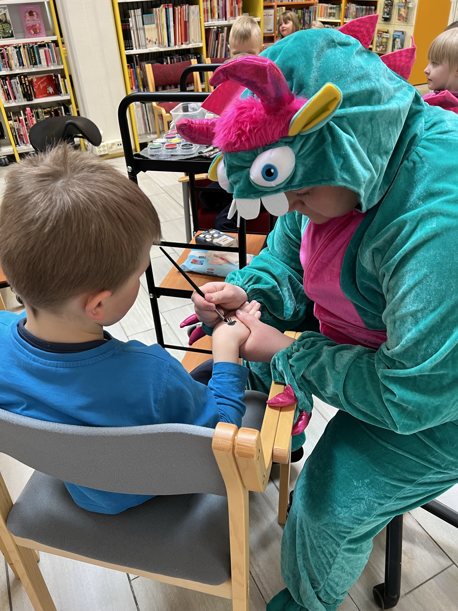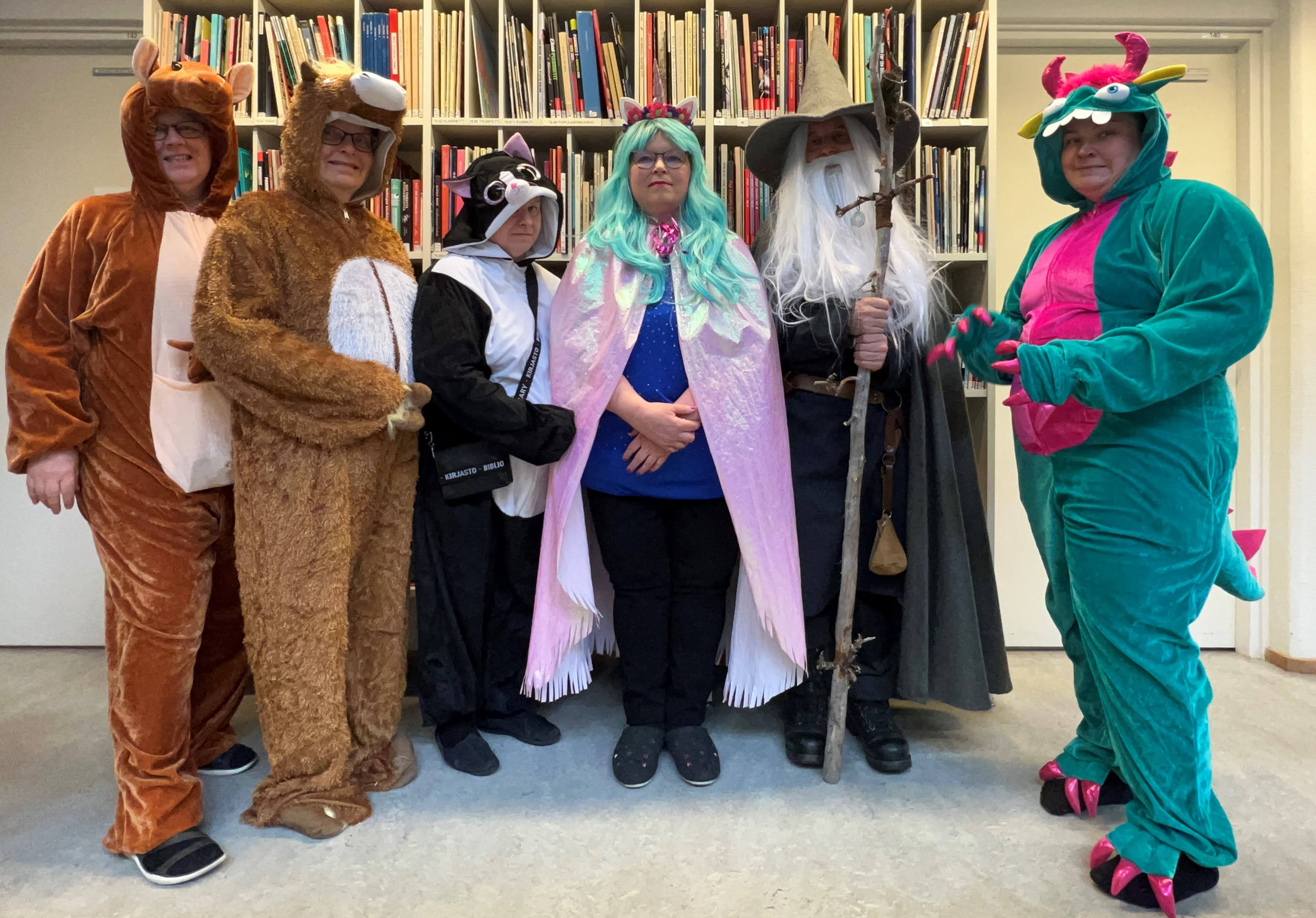 Meitä kirjastolaisia on täällä 6 henkilöä, joten tekemistä riitti kaikille! Maanantain Novellikoukkua järjestää Mirva, aikakauslehtiviikon koululaiskäynnit hoiti Irmeli, Tuula huolehti pop cornien teosta ja muustakin tarjoilusta, Marru taiteili lapsille kasvoihin kuvia, Petri teki kaikki mainokset, täytti ilmapalloja, oli ongintavastaava ja herätti ihastusta Gandalfina ja Leena striimasi lähetykset ja haahuili ympäriinsä.