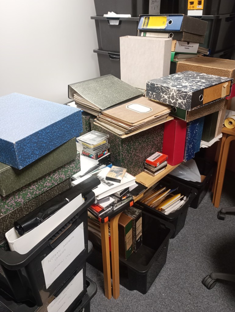 Muuttaessamme väistötiloihin pakkasimme mukaan myös ns. arkiston, eli varaston perälle, ehkä hyvästä syystä, unohdetun aineiston, jota ei kukaan vuosikymmeniin ole tarvinnut. Järjestely eli turhan poistaminen sovittiin minun tehtäväkseni, ehkä siksi kun työurani loppusuora on jo alkanut. Kyseessä olisi siis jonkinlainen joutsenlaulu. Eikä kukaan muu ole kiinnostunut. Nuorisokaarti (alle 60-vuotiaat) jätti suosiolla pölyisen homman (kaiken) kokeneen kollegan kontolle. Asiakkaiden viihtyvyydenkin kannalta lienee parempi, että työpisteeni on mahdollisimman kaukana palvelutiskiltä. Vanhempi väki säästyy järkytyksiltä ja lapset traumoilta.